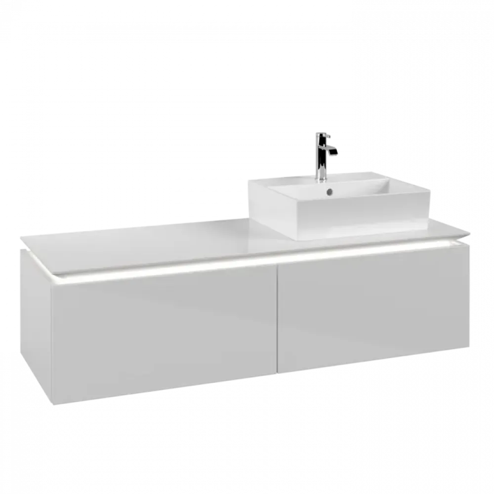 Villeroy & Boch Legato Тумба под раковину, с подсветкой, 2 выдвижных ящика, 1400 x 380 x 500 mm, Glossy White / Glossy White