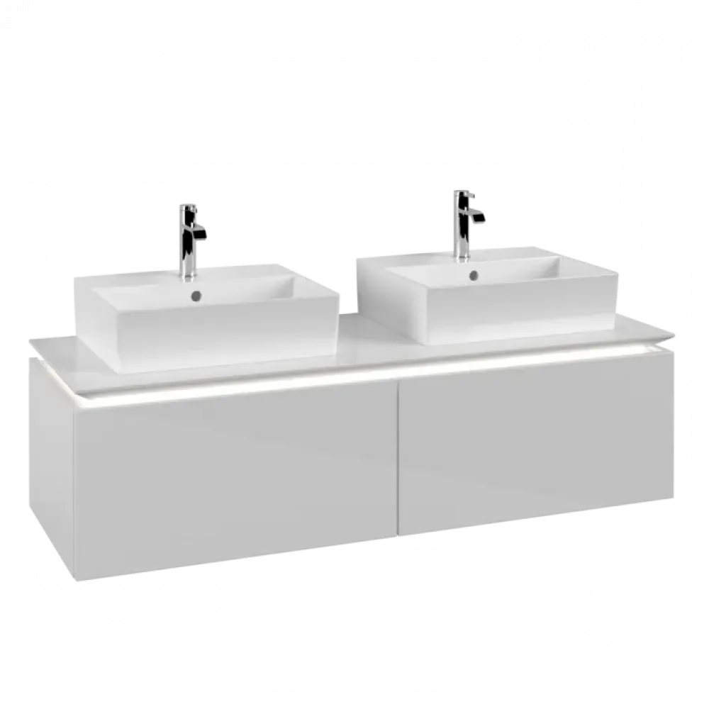 Villeroy & Boch Legato Тумба под раковину, с подсветкой, 2 выдвижных ящика, 1400 x 380 x 500 mm, Glossy White / Glossy White
