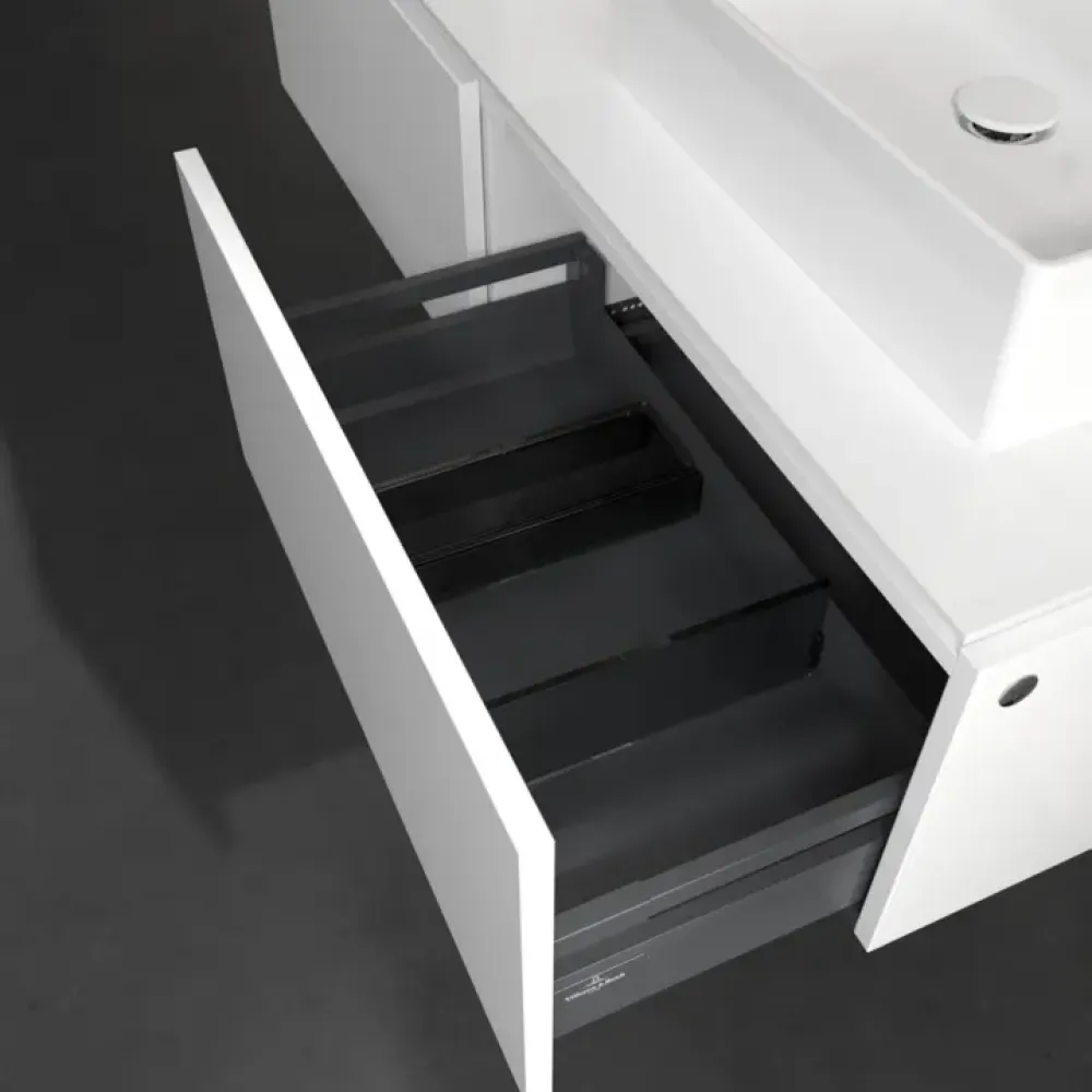 Продуманное внутреннее разделение мебели для ванной Villeroy & Boch позволяет создать индивидуальную систему организации пространства в ванной комнате. Элементы, расположение которых можно менять, например регулируемые стеклянные перегородки и контейнеры для аксессуаров различных размеров, обеспечивают хороший обзор и порядок. Благодаря практичной системе внутреннего разделения вы будете быстро находить принадлежности для ванной, которыми вы постоянно пользуетесь.
