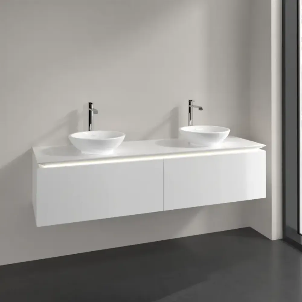 Villeroy & Boch Legato Тумба под раковину, с подсветкой, 2 выдвижных ящика, 1600 x 380 x 500 mm, Glossy White / Glossy White