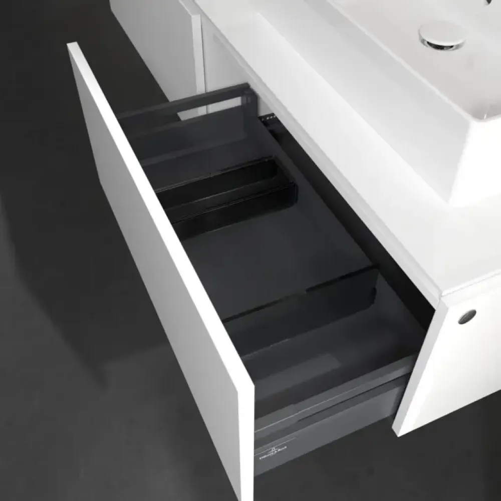 Продуманное внутреннее разделение мебели для ванной Villeroy & Boch позволяет создать индивидуальную систему организации пространства в ванной комнате. Элементы, расположение которых можно менять, например регулируемые стеклянные перегородки и контейнеры для аксессуаров различных размеров, обеспечивают хороший обзор и порядок. Благодаря практичной системе внутреннего разделения вы будете быстро находить принадлежности для ванной, которыми вы постоянно пользуетесь.