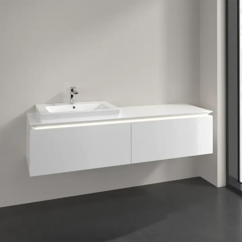 Villeroy & Boch Legato Тумба под раковину, с подсветкой, 2 выдвижных ящика, 1600 x 380 x 500 mm, Glossy White / Glossy White