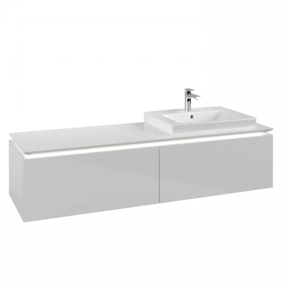 Villeroy & Boch Legato Тумба под раковину, с подсветкой, 2 выдвижных ящика, 1600 x 380 x 500 mm, Glossy White / Glossy White