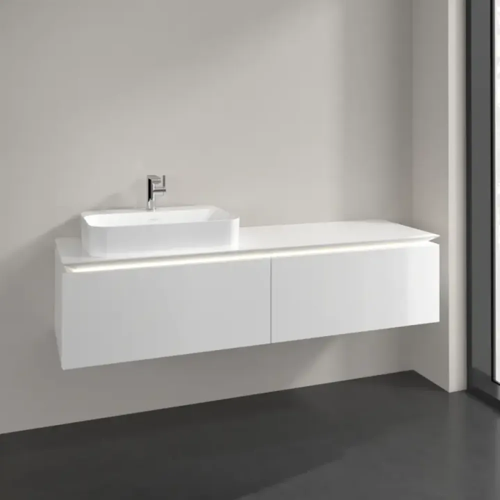 Villeroy & Boch Legato Тумба под раковину, с подсветкой, 2 выдвижных ящика, 1600 x 380 x 500 mm, Glossy White / Glossy White