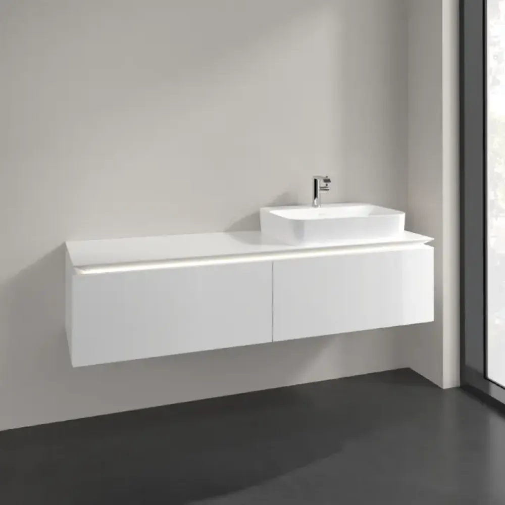 Villeroy & Boch Legato Тумба под раковину, с подсветкой, 2 выдвижных ящика, 1600 x 380 x 500 mm, Glossy White / Glossy White