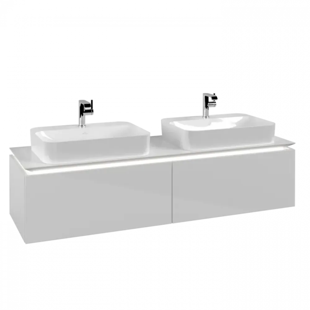 Villeroy & Boch Legato Тумба под раковину, с подсветкой, 2 выдвижных ящика, 1600 x 380 x 500 mm, Glossy White / Glossy White