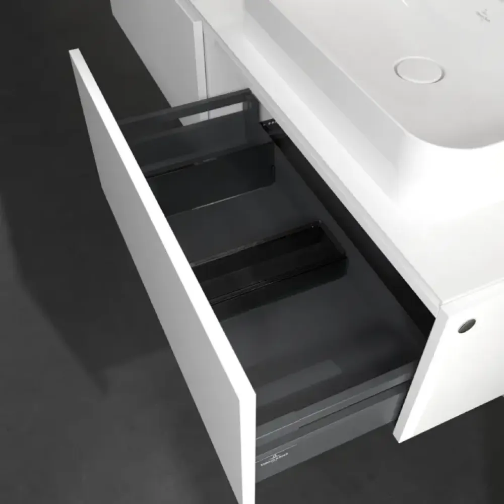 Продуманное внутреннее разделение мебели для ванной Villeroy & Boch позволяет создать индивидуальную систему организации пространства в ванной комнате. Элементы, расположение которых можно менять, например регулируемые стеклянные перегородки и контейнеры для аксессуаров различных размеров, обеспечивают хороший обзор и порядок. Благодаря практичной системе внутреннего разделения вы будете быстро находить принадлежности для ванной, которыми вы постоянно пользуетесь.