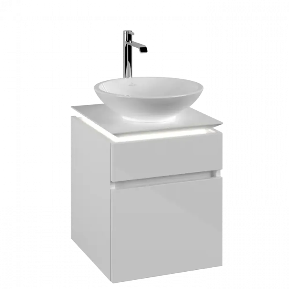 Villeroy & Boch Legato Тумба под раковину, с подсветкой, 2 выдвижных ящика, 450 x 550 x 500 mm, Glossy White / Glossy White
