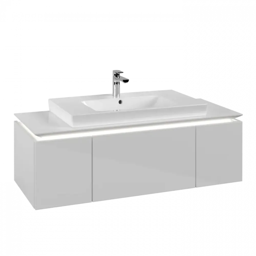 Villeroy & Boch Legato Тумба под раковину, с подсветкой, 3 выдвижных ящика, 1200 x 380 x 500 mm, Glossy White / Glossy White