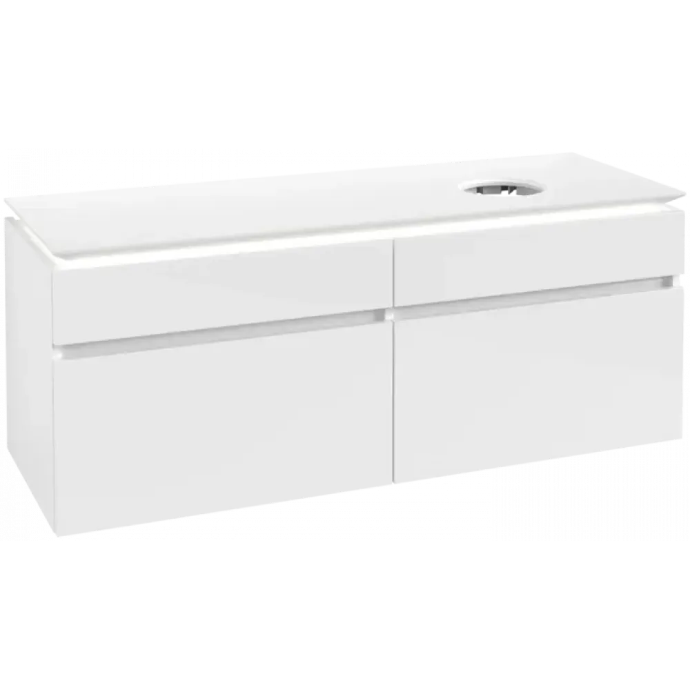 Villeroy & Boch Legato Тумба под раковину, с подсветкой, 4 выдвижных ящика, 1400 x 550 x 500 mm, Glossy White / Glossy White