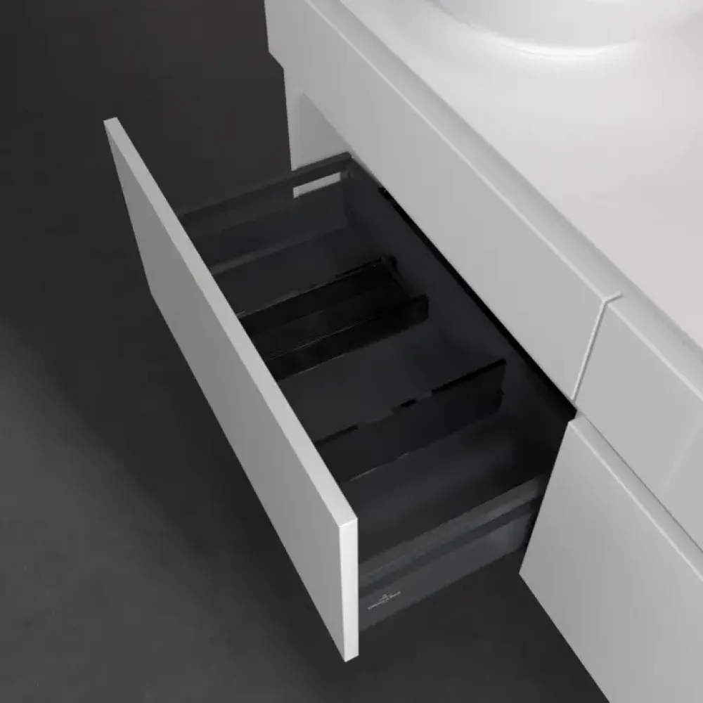 Продуманное внутреннее разделение мебели для ванной Villeroy & Boch позволяет создать индивидуальную систему организации пространства в ванной комнате. Элементы, расположение которых можно менять, например регулируемые стеклянные перегородки и контейнеры для аксессуаров различных размеров, обеспечивают хороший обзор и порядок. Благодаря практичной системе внутреннего разделения вы будете быстро находить принадлежности для ванной, которыми вы постоянно пользуетесь.