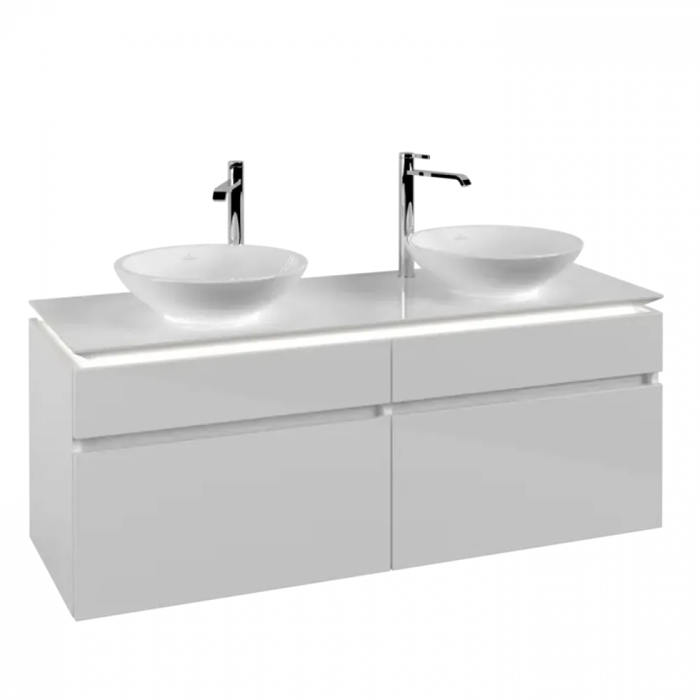 Villeroy & Boch Legato Тумба под раковину, с подсветкой, 4 выдвижных ящика, 1400 x 550 x 500 mm, Glossy White / Glossy White
