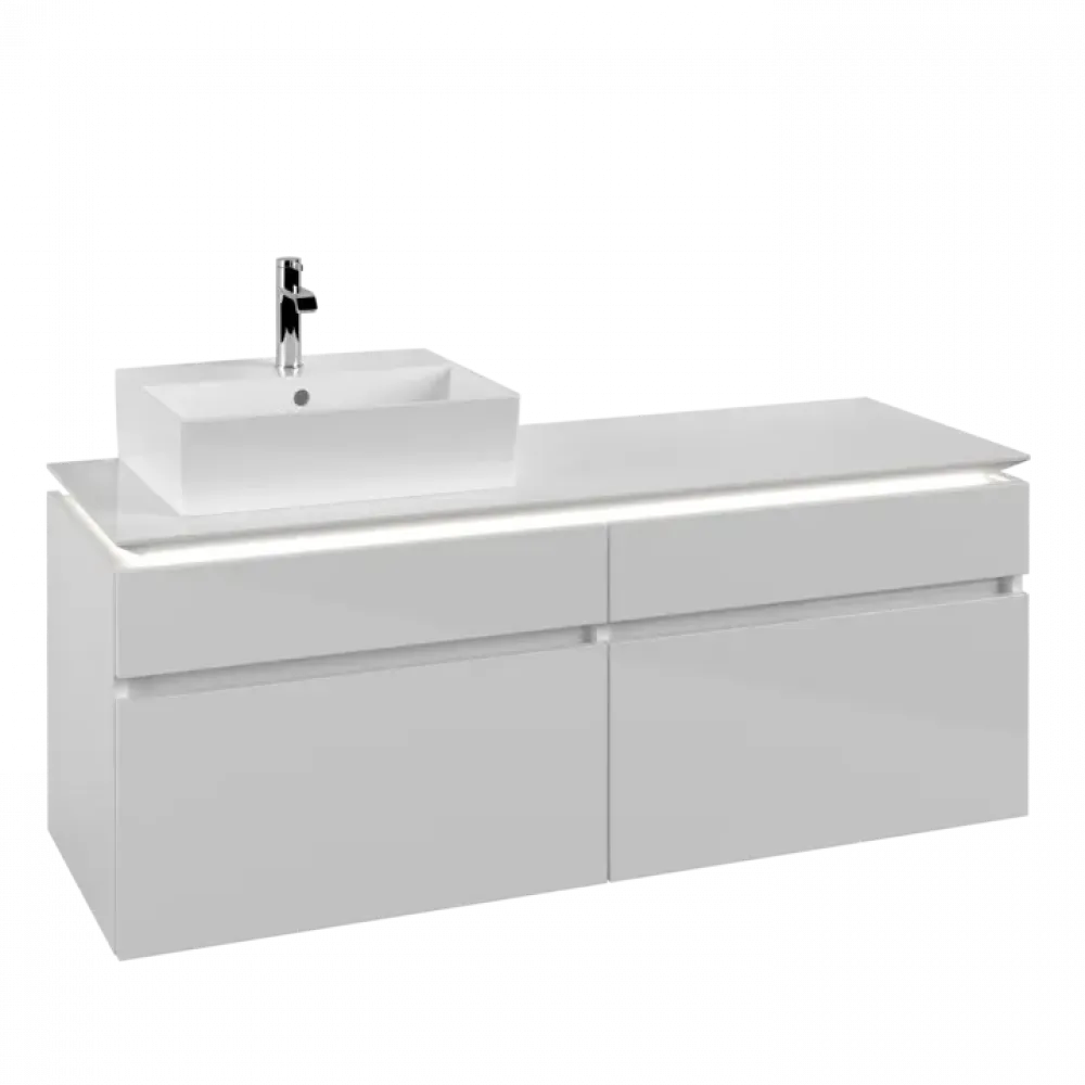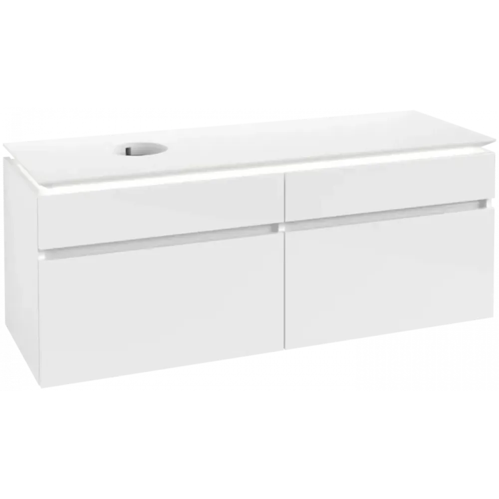 Villeroy & Boch Legato Тумба под раковину, с подсветкой, 4 выдвижных ящика, 1400 x 550 x 500 mm, Glossy White / Glossy White