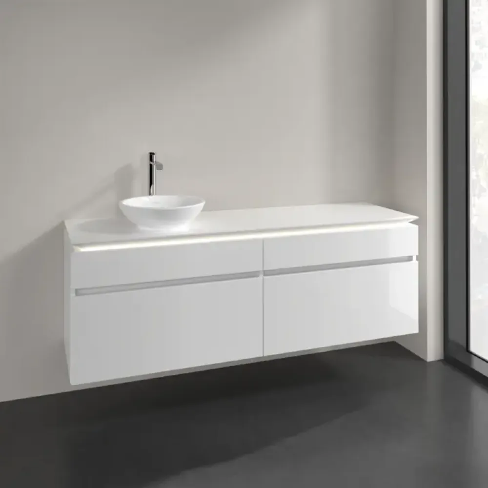 Villeroy & Boch Legato Тумба под раковину, с подсветкой, 4 выдвижных ящика, 1600 x 550 x 500 mm, Glossy White / Glossy White