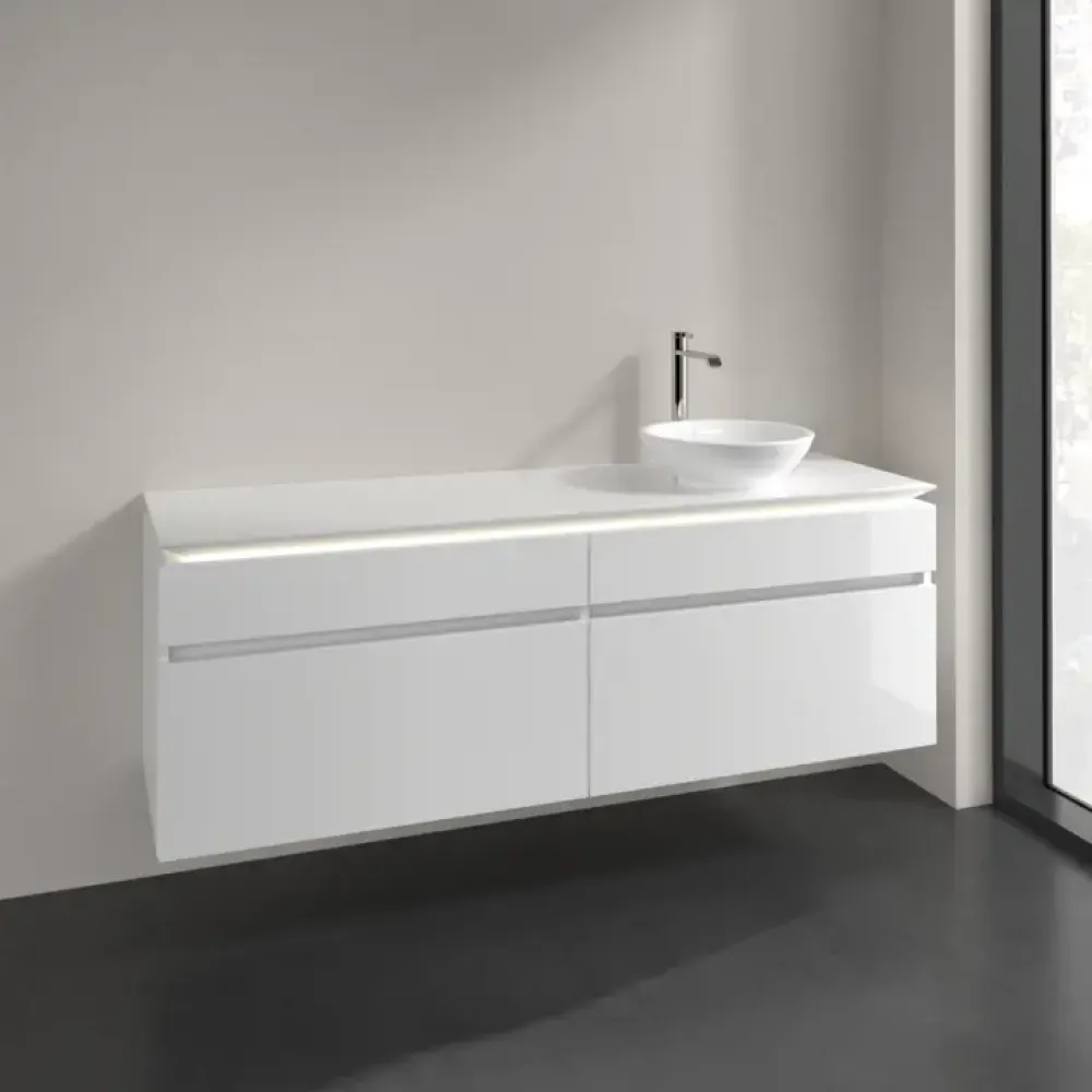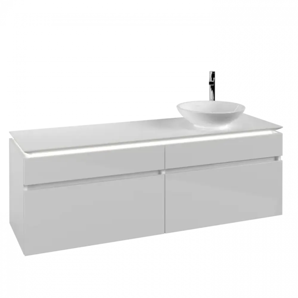 Villeroy & Boch Legato Тумба под раковину, с подсветкой, 4 выдвижных ящика, 1600 x 550 x 500 mm, Glossy White / Glossy White