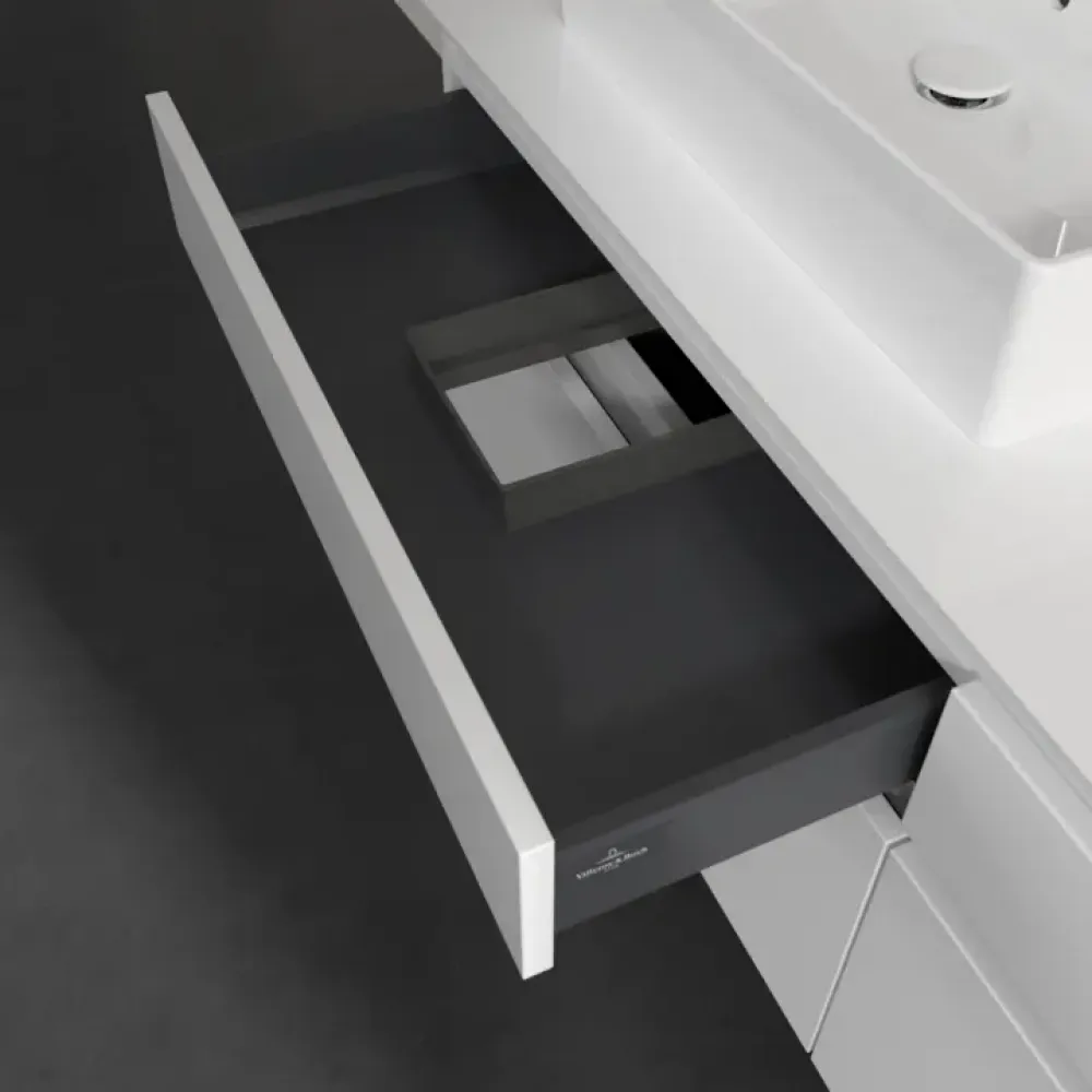 Продуманное внутреннее разделение мебели для ванной Villeroy & Boch позволяет создать индивидуальную систему организации пространства в ванной комнате. Элементы, расположение которых можно менять, например регулируемые стеклянные перегородки и контейнеры для аксессуаров различных размеров, обеспечивают хороший обзор и порядок. Благодаря практичной системе внутреннего разделения вы будете быстро находить принадлежности для ванной, которыми вы постоянно пользуетесь.