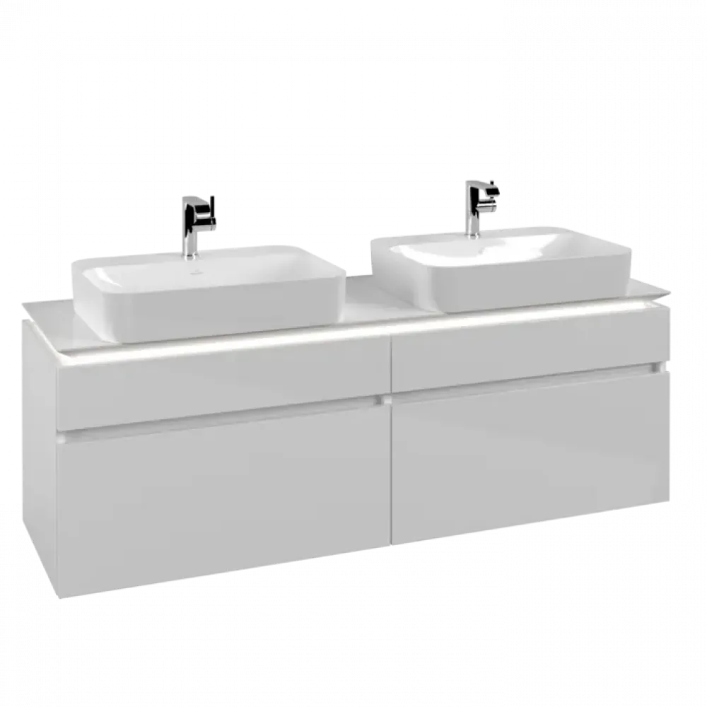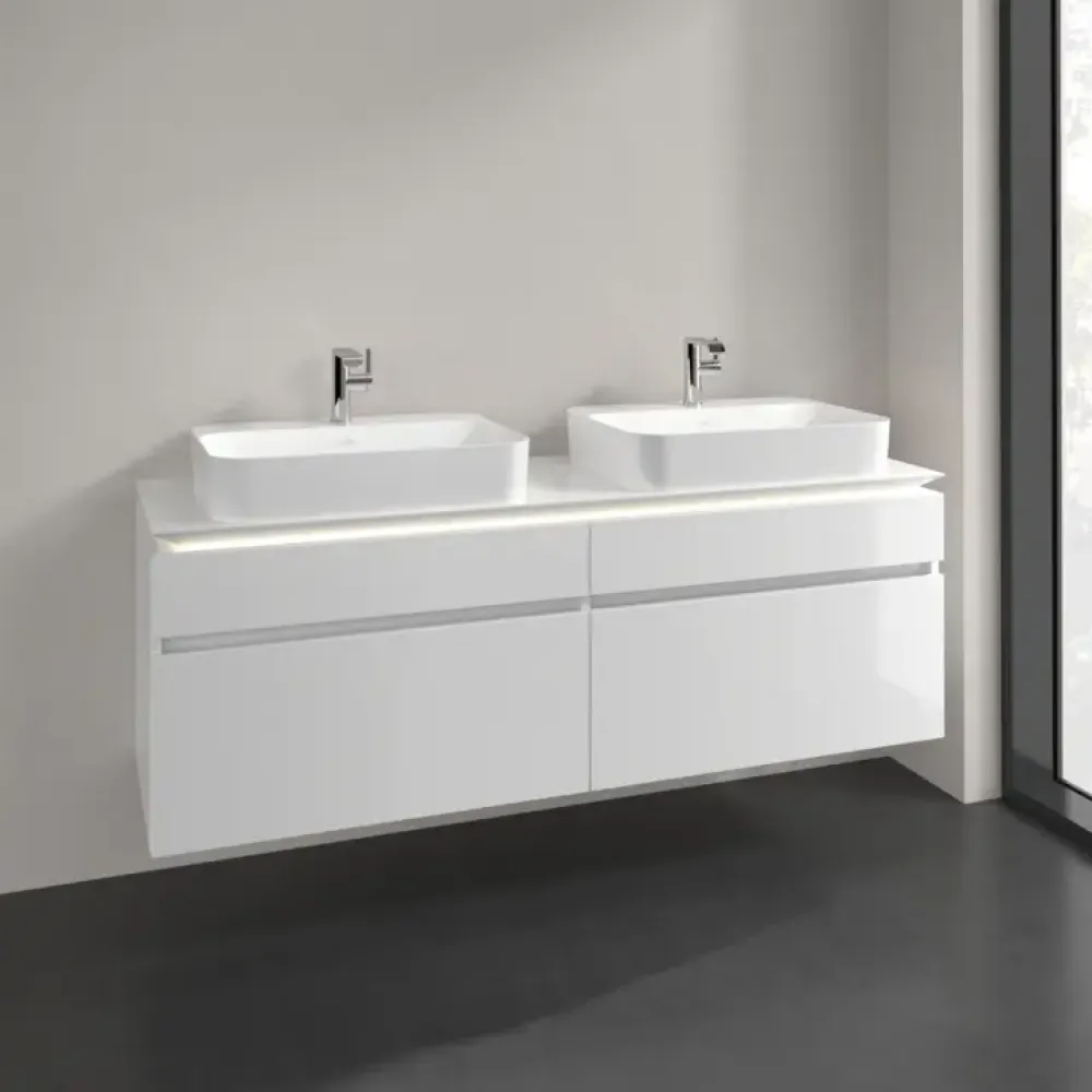 Villeroy & Boch Legato Тумба под раковину, с подсветкой, 4 выдвижных ящика, 1600 x 550 x 500 mm, Glossy White / Glossy White