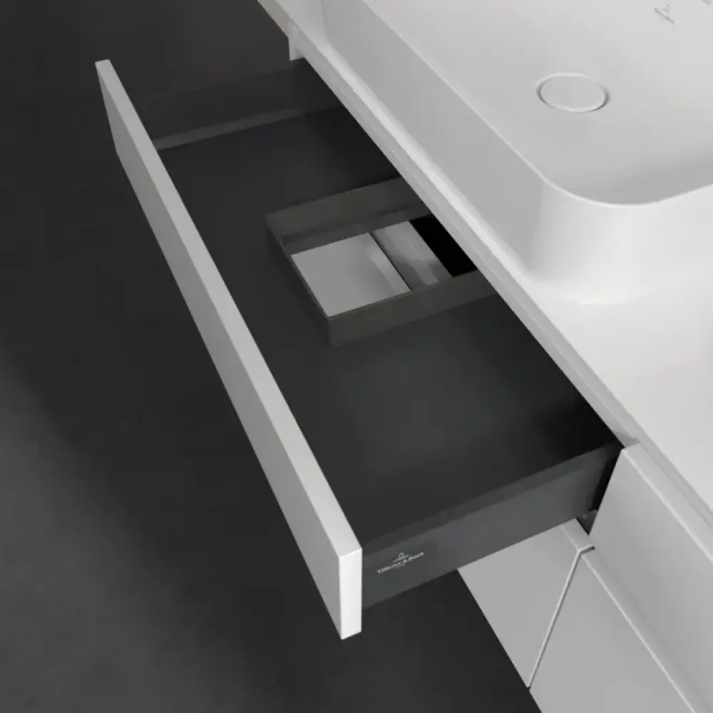 Продуманное внутреннее разделение мебели для ванной Villeroy & Boch позволяет создать индивидуальную систему организации пространства в ванной комнате. Элементы, расположение которых можно менять, например регулируемые стеклянные перегородки и контейнеры для аксессуаров различных размеров, обеспечивают хороший обзор и порядок. Благодаря практичной системе внутреннего разделения вы будете быстро находить принадлежности для ванной, которыми вы постоянно пользуетесь.