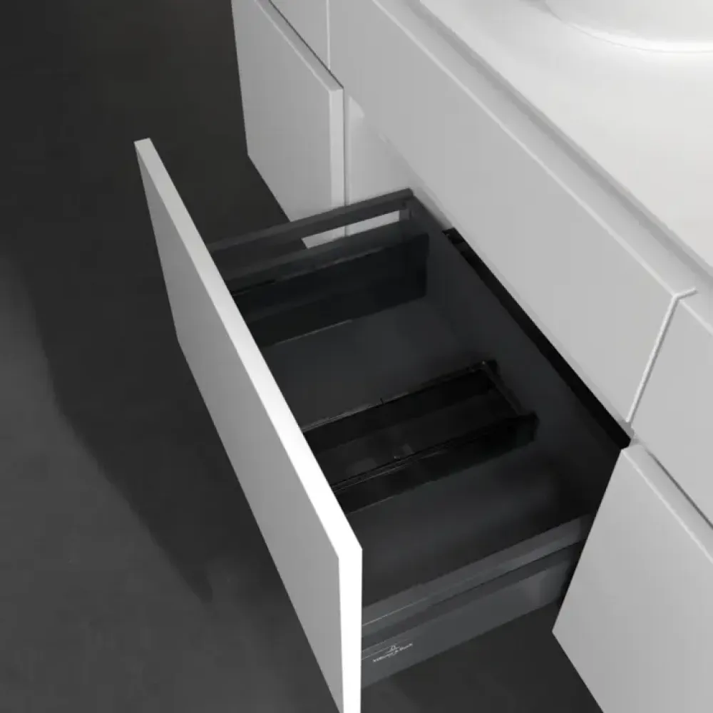 Продуманное внутреннее разделение мебели для ванной Villeroy & Boch позволяет создать индивидуальную систему организации пространства в ванной комнате. Элементы, расположение которых можно менять, например регулируемые стеклянные перегородки и контейнеры для аксессуаров различных размеров, обеспечивают хороший обзор и порядок. Благодаря практичной системе внутреннего разделения вы будете быстро находить принадлежности для ванной, которыми вы постоянно пользуетесь.