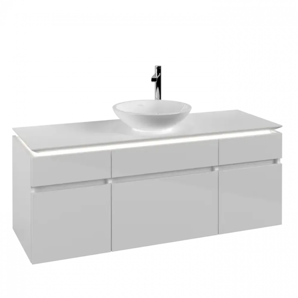 Villeroy & Boch Legato Тумба под раковину, с подсветкой, 5 выдвижных ящиков, 1400 x 550 x 500 mm, Glossy White / Glossy White