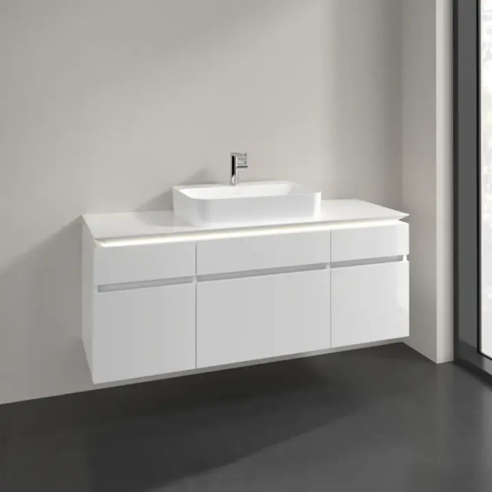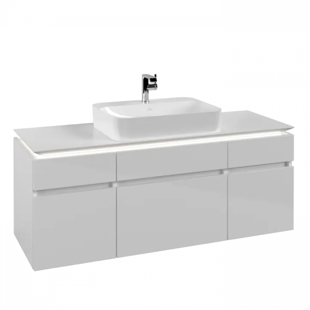 Villeroy & Boch Legato Тумба под раковину, с подсветкой, 5 выдвижных ящиков, 1400 x 550 x 500 mm, Glossy White / Glossy White