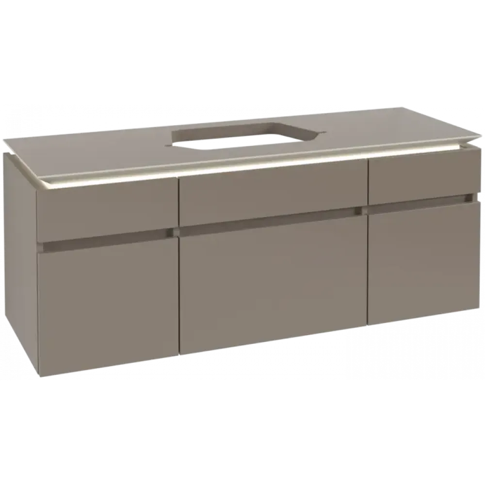 Villeroy & Boch Legato Тумба под раковину, с подсветкой, 5 выдвижных ящиков, 1400 x 550 x 500 mm, Truffle Grey / Truffle Grey
