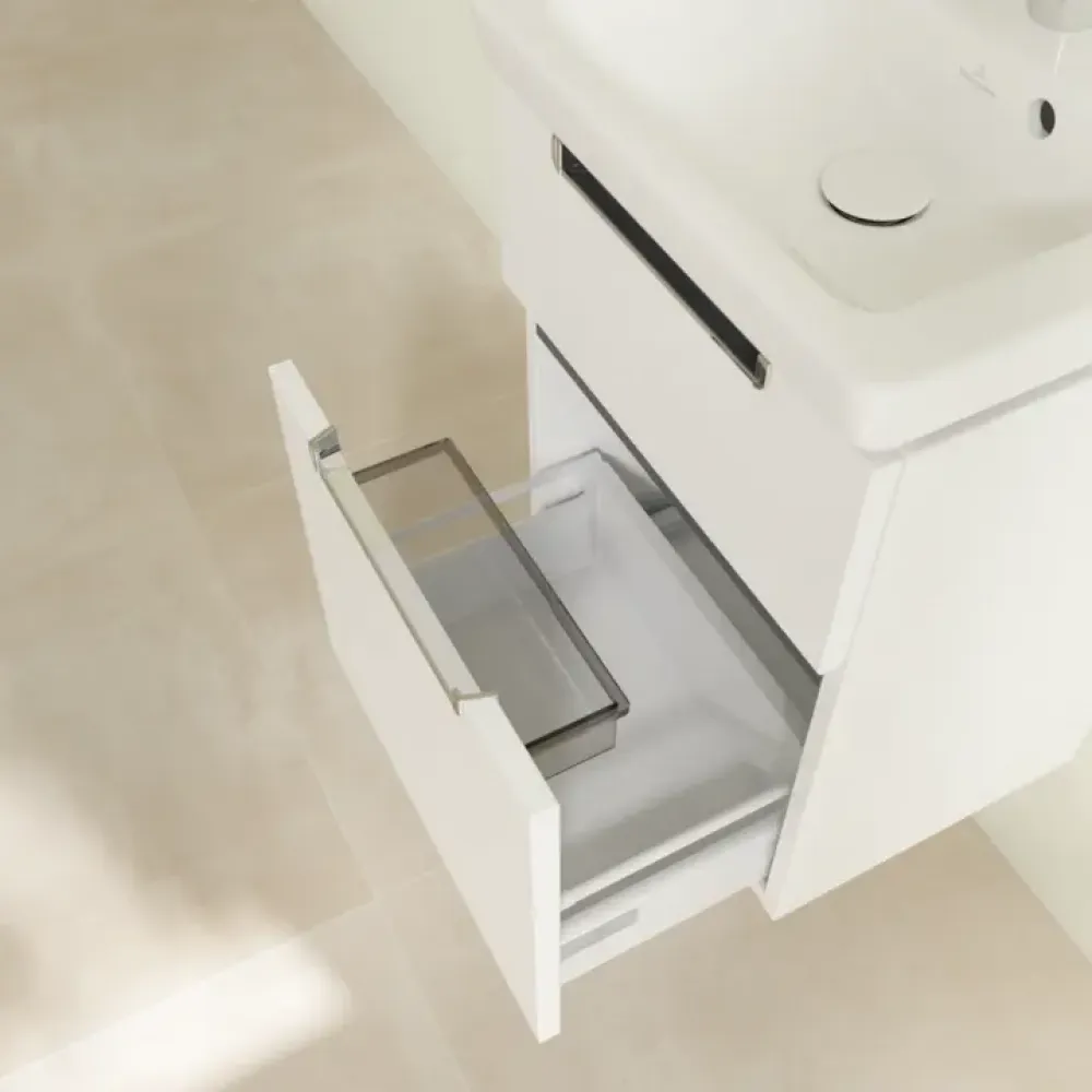 Продуманное внутреннее разделение мебели для ванной Villeroy & Boch позволяет создать индивидуальную систему организации пространства в ванной комнате. Элементы, расположение которых можно менять, например регулируемые стеклянные перегородки и контейнеры для аксессуаров различных размеров, обеспечивают хороший обзор и порядок. Благодаря практичной системе внутреннего разделения вы будете быстро находить принадлежности для ванной, которыми вы постоянно пользуетесь.