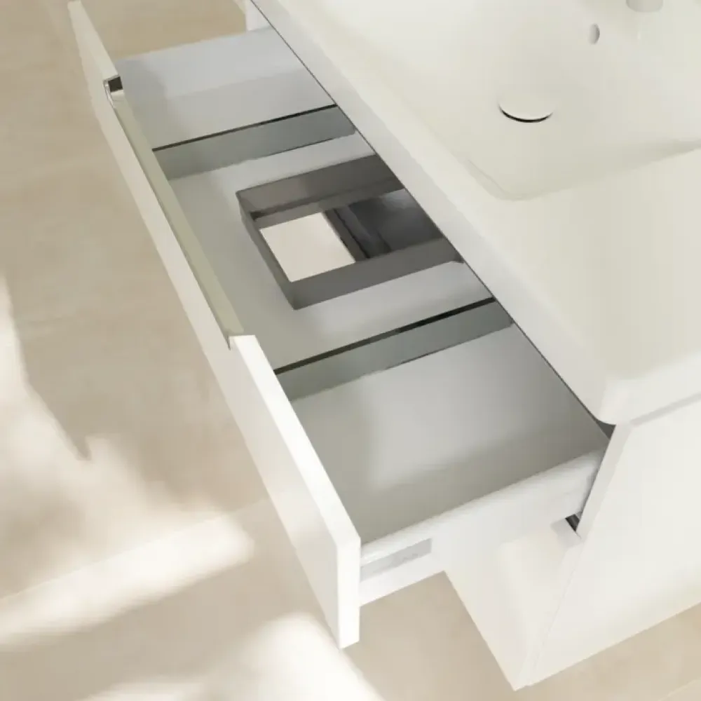 Продуманное внутреннее разделение мебели для ванной Villeroy & Boch позволяет создать индивидуальную систему организации пространства в ванной комнате. Элементы, расположение которых можно менять, например регулируемые стеклянные перегородки и контейнеры для аксессуаров различных размеров, обеспечивают хороший обзор и порядок. Благодаря практичной системе внутреннего разделения вы будете быстро находить принадлежности для ванной, которыми вы постоянно пользуетесь.