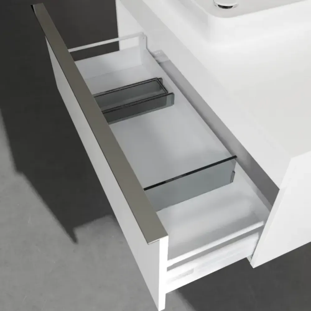 Продуманное внутреннее разделение мебели для ванной Villeroy & Boch позволяет создать индивидуальную систему организации пространства в ванной комнате. Элементы, расположение которых можно менять, например регулируемые стеклянные перегородки и контейнеры для аксессуаров различных размеров, обеспечивают хороший обзор и порядок. Благодаря практичной системе внутреннего разделения вы будете быстро находить принадлежности для ванной, которыми вы постоянно пользуетесь.
