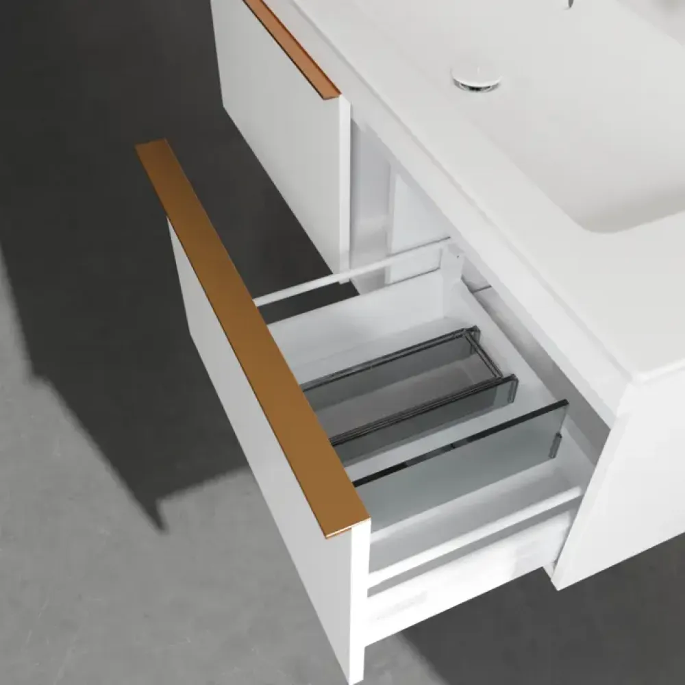 Продуманное внутреннее разделение мебели для ванной Villeroy & Boch позволяет создать индивидуальную систему организации пространства в ванной комнате. Элементы, расположение которых можно менять, например регулируемые стеклянные перегородки и контейнеры для аксессуаров различных размеров, обеспечивают хороший обзор и порядок. Благодаря практичной системе внутреннего разделения вы будете быстро находить принадлежности для ванной, которыми вы постоянно пользуетесь.