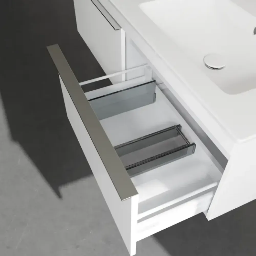 Продуманное внутреннее разделение мебели для ванной Villeroy & Boch позволяет создать индивидуальную систему организации пространства в ванной комнате. Элементы, расположение которых можно менять, например регулируемые стеклянные перегородки и контейнеры для аксессуаров различных размеров, обеспечивают хороший обзор и порядок. Благодаря практичной системе внутреннего разделения вы будете быстро находить принадлежности для ванной, которыми вы постоянно пользуетесь.