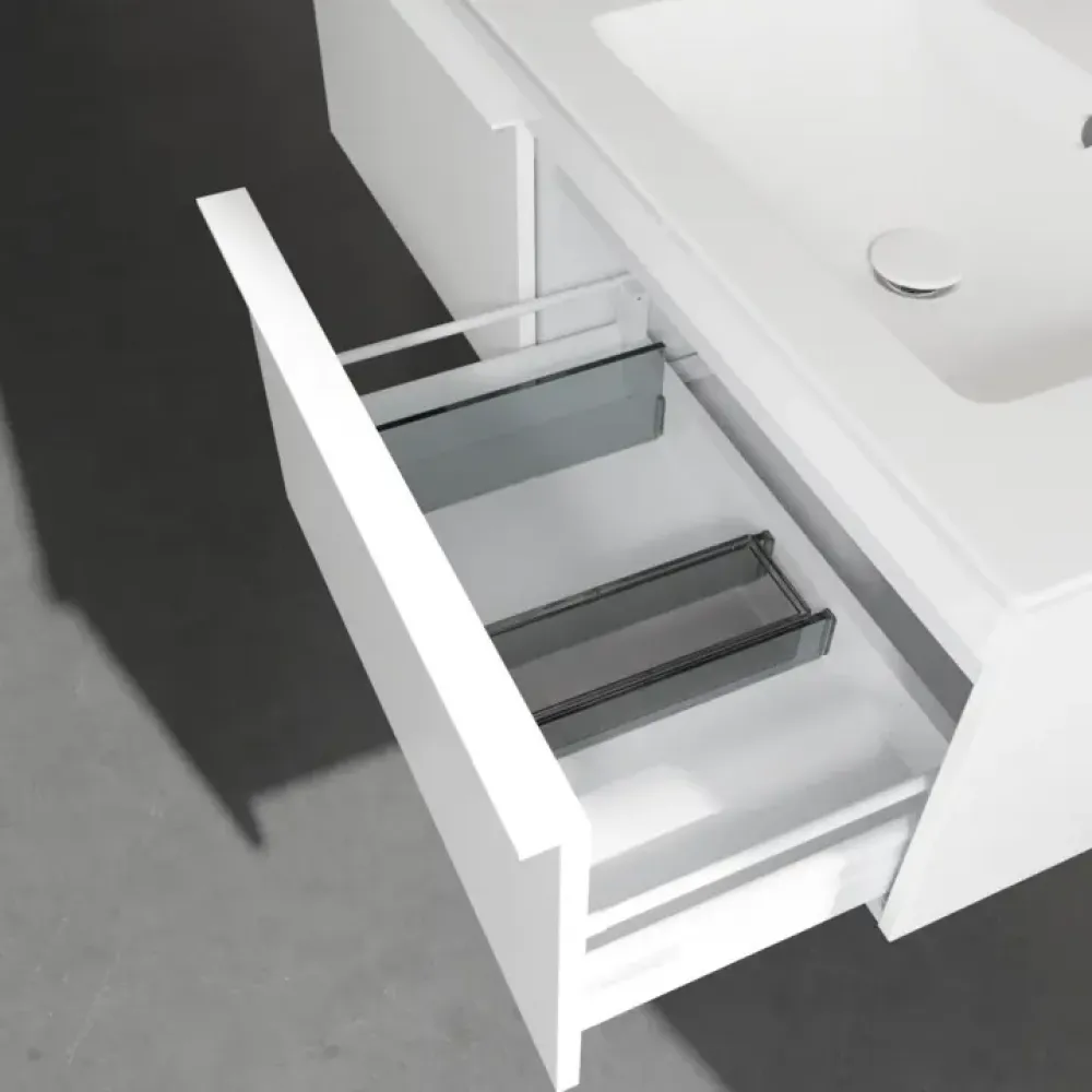 Продуманное внутреннее разделение мебели для ванной Villeroy & Boch позволяет создать индивидуальную систему организации пространства в ванной комнате. Элементы, расположение которых можно менять, например регулируемые стеклянные перегородки и контейнеры для аксессуаров различных размеров, обеспечивают хороший обзор и порядок. Благодаря практичной системе внутреннего разделения вы будете быстро находить принадлежности для ванной, которыми вы постоянно пользуетесь.