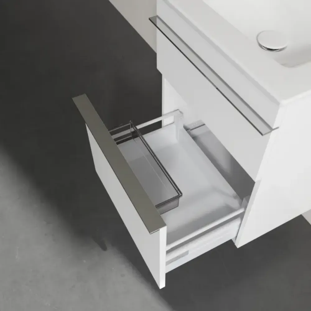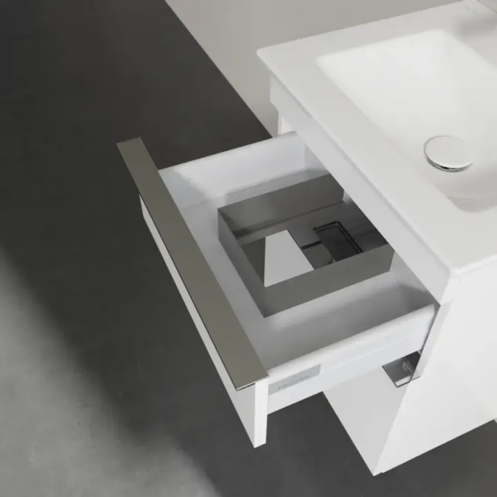 Продуманное внутреннее разделение мебели для ванной Villeroy & Boch позволяет создать индивидуальную систему организации пространства в ванной комнате. Элементы, расположение которых можно менять, например регулируемые стеклянные перегородки и контейнеры для аксессуаров различных размеров, обеспечивают хороший обзор и порядок. Благодаря практичной системе внутреннего разделения вы будете быстро находить принадлежности для ванной, которыми вы постоянно пользуетесь.