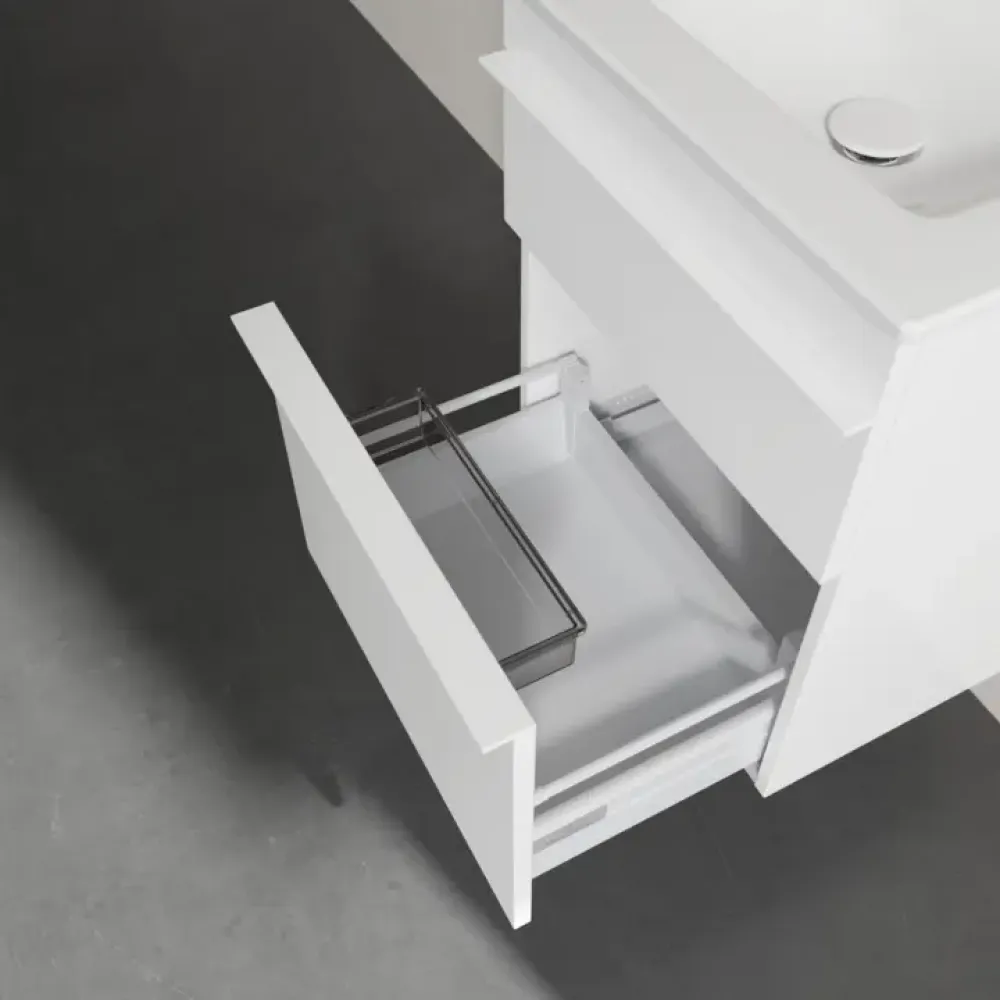 Продуманное внутреннее разделение мебели для ванной Villeroy & Boch позволяет создать индивидуальную систему организации пространства в ванной комнате. Элементы, расположение которых можно менять, например регулируемые стеклянные перегородки и контейнеры для аксессуаров различных размеров, обеспечивают хороший обзор и порядок. Благодаря практичной системе внутреннего разделения вы будете быстро находить принадлежности для ванной, которыми вы постоянно пользуетесь.