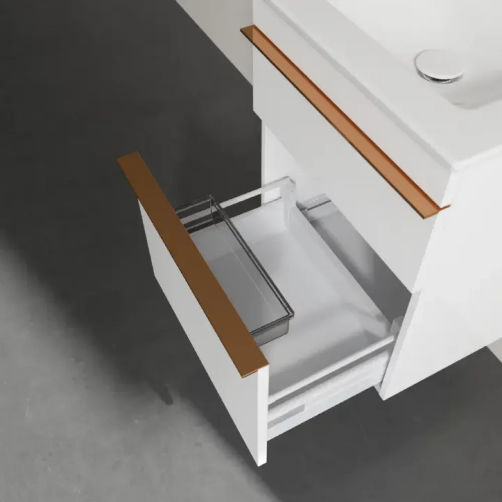 Продуманное внутреннее разделение мебели для ванной Villeroy & Boch позволяет создать индивидуальную систему организации пространства в ванной комнате. Элементы, расположение которых можно менять, например регулируемые стеклянные перегородки и контейнеры для аксессуаров различных размеров, обеспечивают хороший обзор и порядок. Благодаря практичной системе внутреннего разделения вы будете быстро находить принадлежности для ванной, которыми вы постоянно пользуетесь.