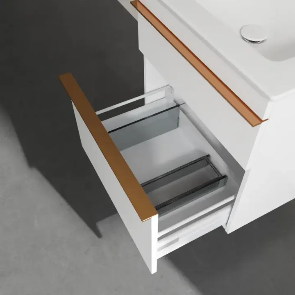 Продуманное внутреннее разделение мебели для ванной Villeroy & Boch позволяет создать индивидуальную систему организации пространства в ванной комнате. Элементы, расположение которых можно менять, например регулируемые стеклянные перегородки и контейнеры для аксессуаров различных размеров, обеспечивают хороший обзор и порядок. Благодаря практичной системе внутреннего разделения вы будете быстро находить принадлежности для ванной, которыми вы постоянно пользуетесь.