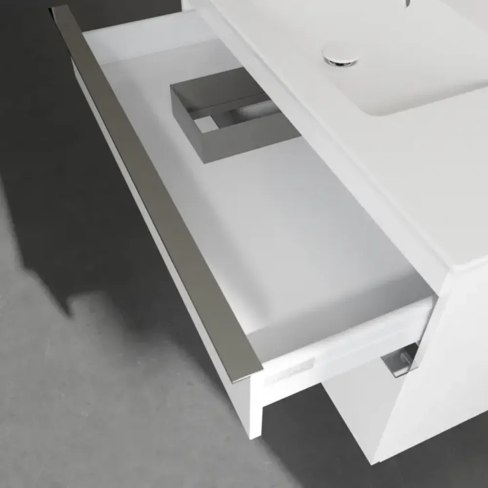 Продуманное внутреннее разделение мебели для ванной Villeroy & Boch позволяет создать индивидуальную систему организации пространства в ванной комнате. Элементы, расположение которых можно менять, например регулируемые стеклянные перегородки и контейнеры для аксессуаров различных размеров, обеспечивают хороший обзор и порядок. Благодаря практичной системе внутреннего разделения вы будете быстро находить принадлежности для ванной, которыми вы постоянно пользуетесь.