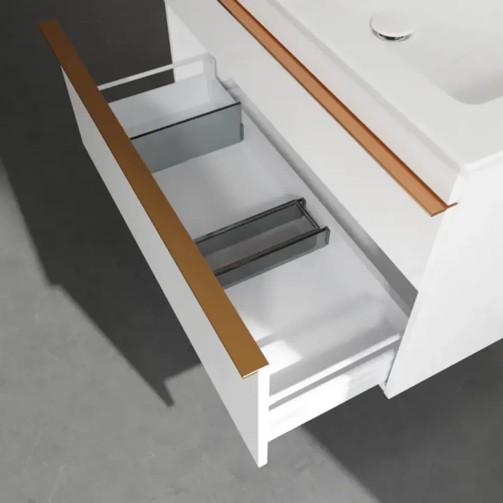 Продуманное внутреннее разделение мебели для ванной Villeroy & Boch позволяет создать индивидуальную систему организации пространства в ванной комнате. Элементы, расположение которых можно менять, например регулируемые стеклянные перегородки и контейнеры для аксессуаров различных размеров, обеспечивают хороший обзор и порядок. Благодаря практичной системе внутреннего разделения вы будете быстро находить принадлежности для ванной, которыми вы постоянно пользуетесь.