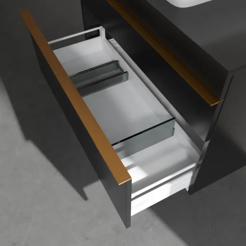 Продуманное внутреннее разделение мебели для ванной Villeroy & Boch позволяет создать индивидуальную систему организации пространства в ванной комнате. Элементы, расположение которых можно менять, например регулируемые стеклянные перегородки и контейнеры для аксессуаров различных размеров, обеспечивают хороший обзор и порядок. Благодаря практичной системе внутреннего разделения вы будете быстро находить принадлежности для ванной, которыми вы постоянно пользуетесь.
