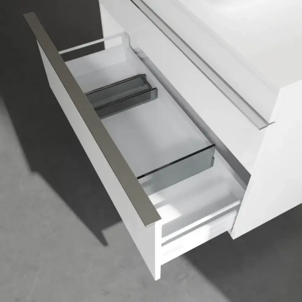 Продуманное внутреннее разделение мебели для ванной Villeroy & Boch позволяет создать индивидуальную систему организации пространства в ванной комнате. Элементы, расположение которых можно менять, например регулируемые стеклянные перегородки и контейнеры для аксессуаров различных размеров, обеспечивают хороший обзор и порядок. Благодаря практичной системе внутреннего разделения вы будете быстро находить принадлежности для ванной, которыми вы постоянно пользуетесь.