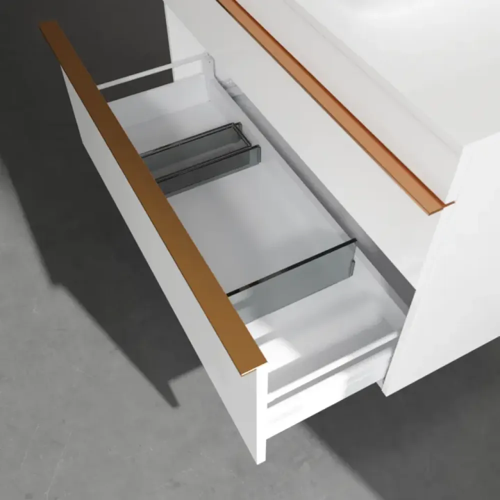Продуманное внутреннее разделение мебели для ванной Villeroy & Boch позволяет создать индивидуальную систему организации пространства в ванной комнате. Элементы, расположение которых можно менять, например регулируемые стеклянные перегородки и контейнеры для аксессуаров различных размеров, обеспечивают хороший обзор и порядок. Благодаря практичной системе внутреннего разделения вы будете быстро находить принадлежности для ванной, которыми вы постоянно пользуетесь.