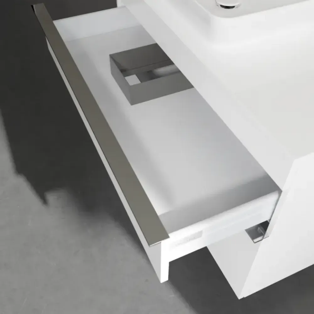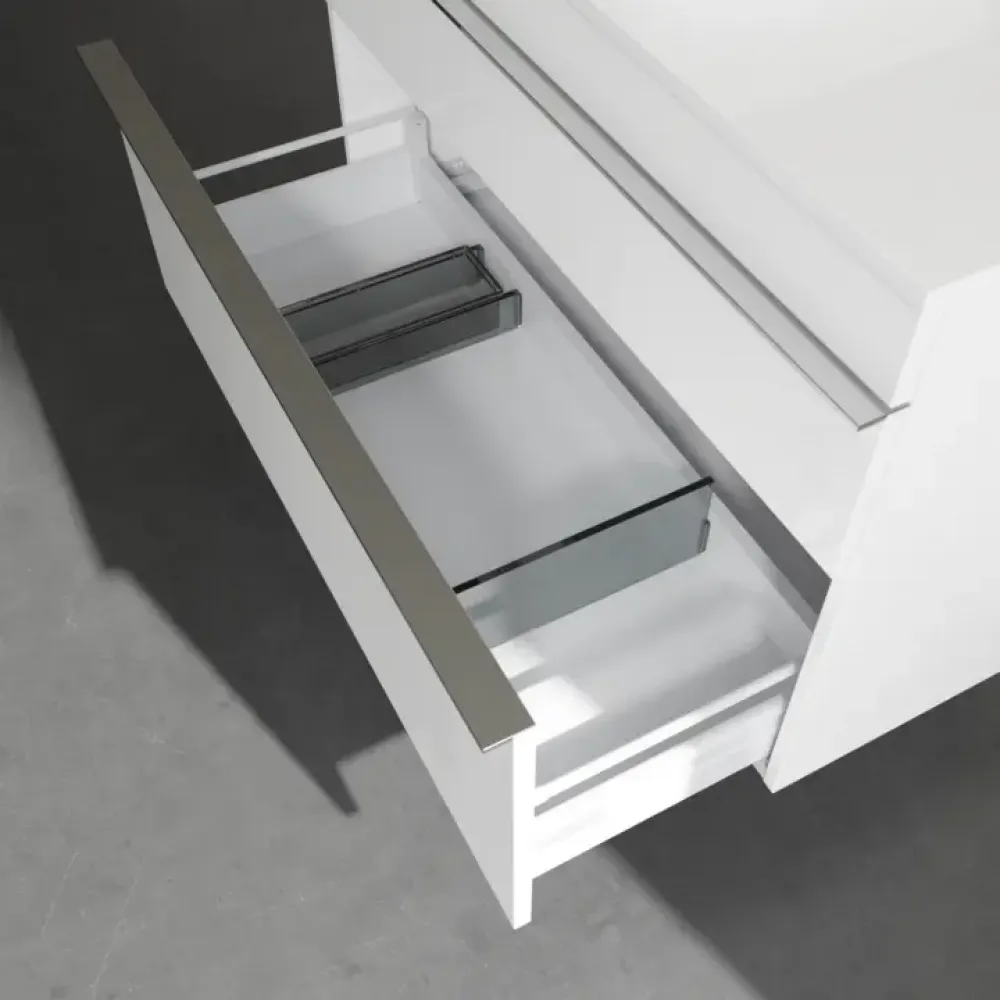 Продуманное внутреннее разделение мебели для ванной Villeroy & Boch позволяет создать индивидуальную систему организации пространства в ванной комнате. Элементы, расположение которых можно менять, например регулируемые стеклянные перегородки и контейнеры для аксессуаров различных размеров, обеспечивают хороший обзор и порядок. Благодаря практичной системе внутреннего разделения вы будете быстро находить принадлежности для ванной, которыми вы постоянно пользуетесь.