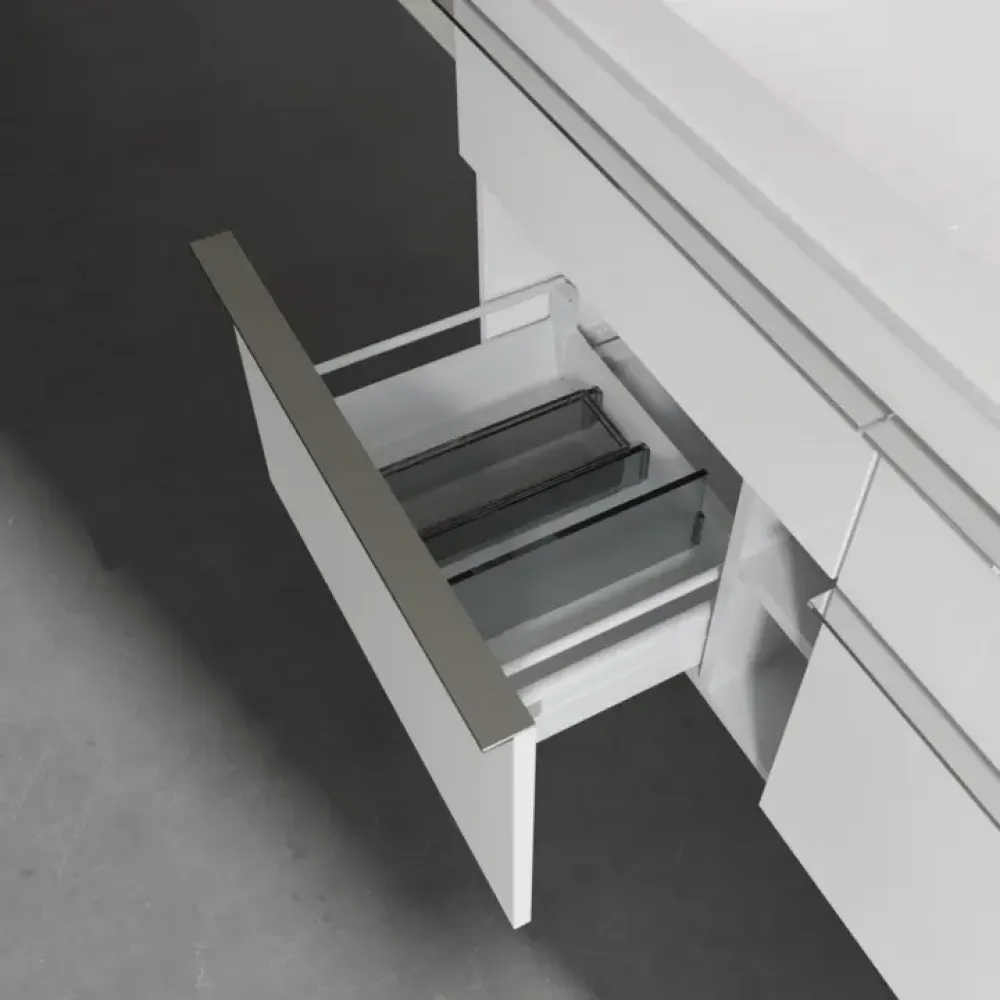 Продуманное внутреннее разделение мебели для ванной Villeroy & Boch позволяет создать индивидуальную систему организации пространства в ванной комнате. Элементы, расположение которых можно менять, например регулируемые стеклянные перегородки и контейнеры для аксессуаров различных размеров, обеспечивают хороший обзор и порядок. Благодаря практичной системе внутреннего разделения вы будете быстро находить принадлежности для ванной, которыми вы постоянно пользуетесь.