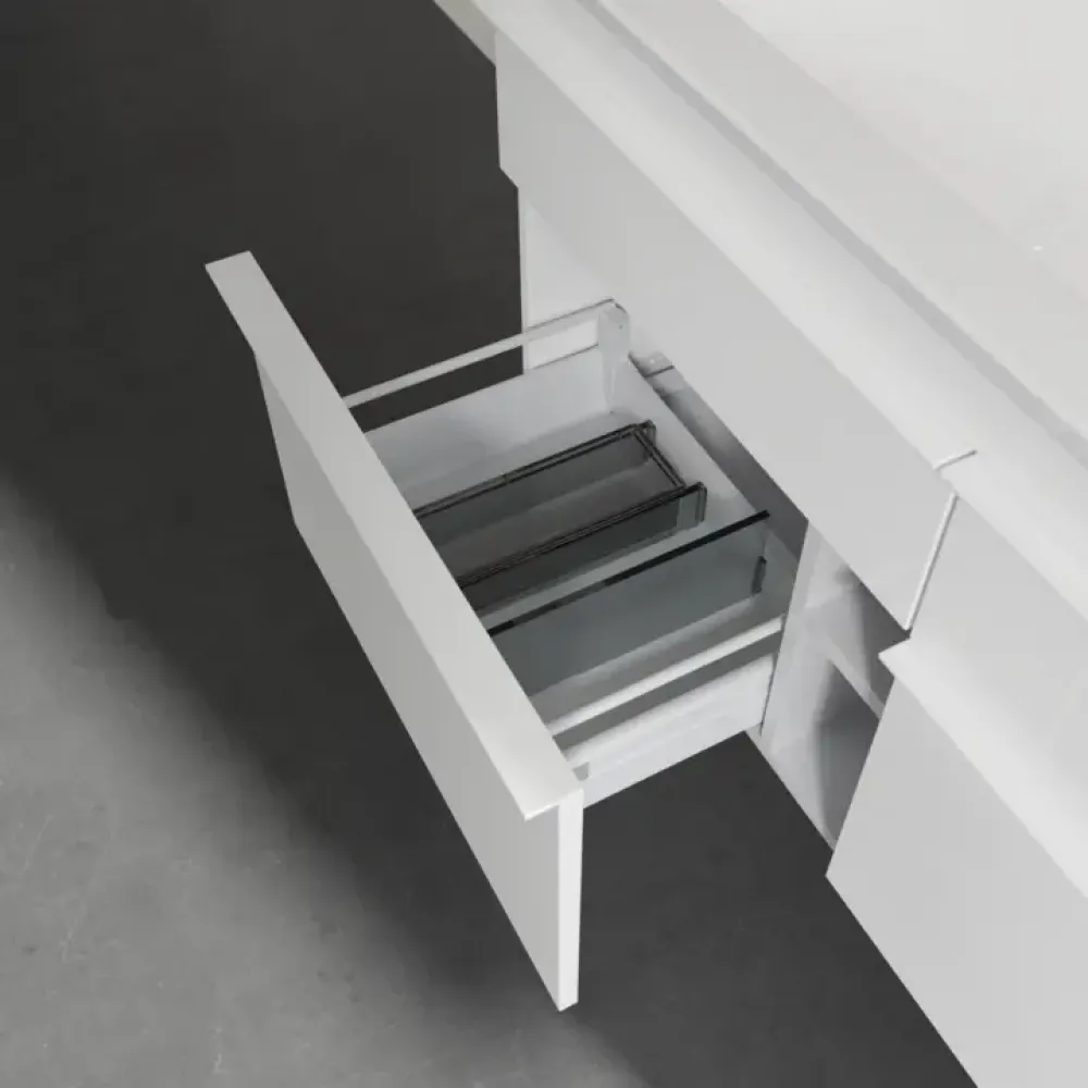 Продуманное внутреннее разделение мебели для ванной Villeroy & Boch позволяет создать индивидуальную систему организации пространства в ванной комнате. Элементы, расположение которых можно менять, например регулируемые стеклянные перегородки и контейнеры для аксессуаров различных размеров, обеспечивают хороший обзор и порядок. Благодаря практичной системе внутреннего разделения вы будете быстро находить принадлежности для ванной, которыми вы постоянно пользуетесь.