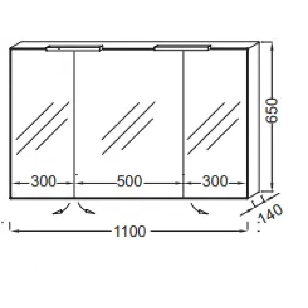 Технические характеристики Зеркало 110х65 см, белый блестящий лак, с подсветкой, 3 дверцы, с подсветкой EB1367-G1C Jacob Delafon