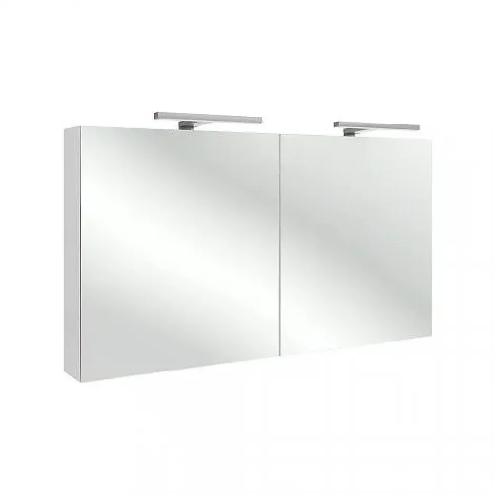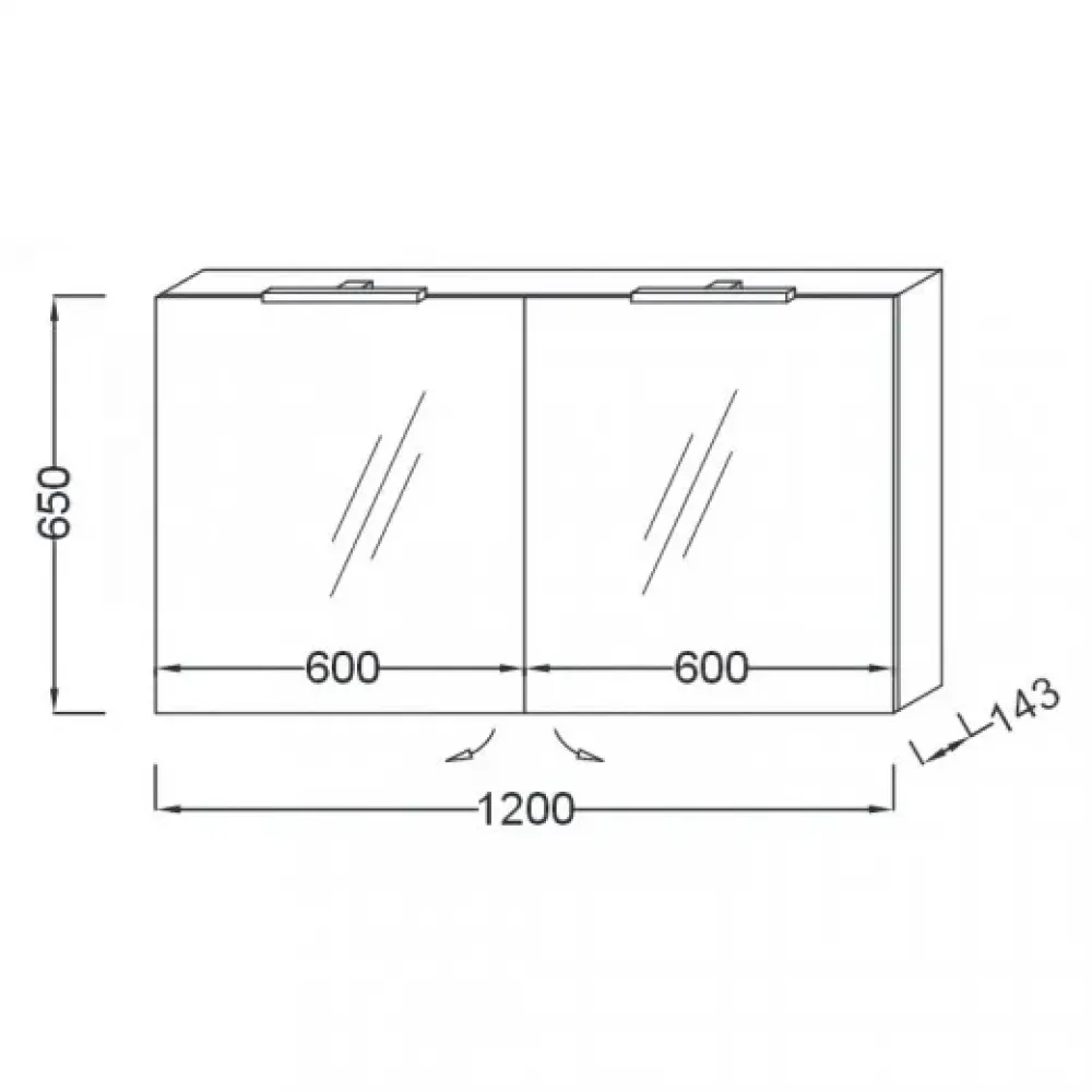 2 зеркальные двойные дверцы, 2 стеклянные полки на отделение