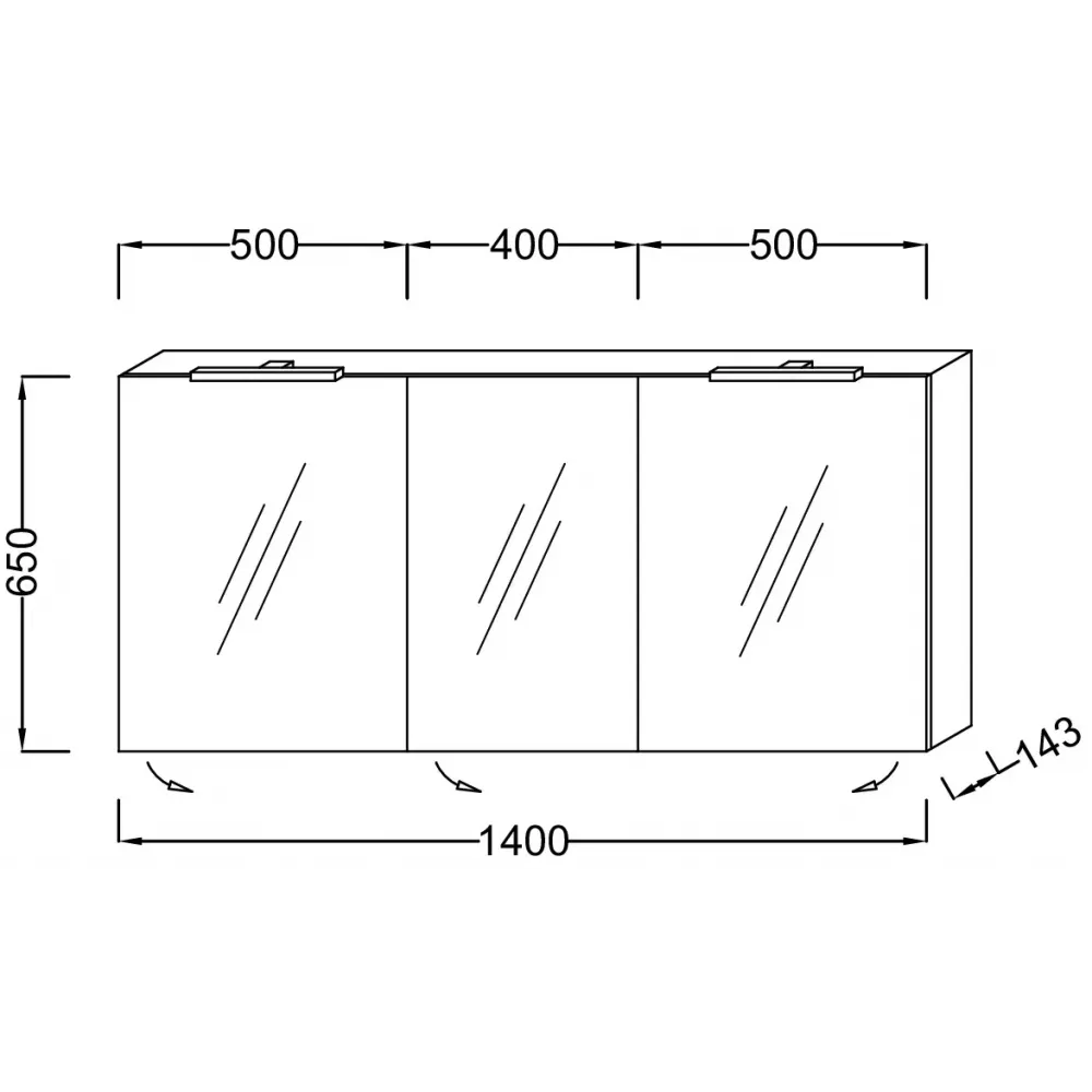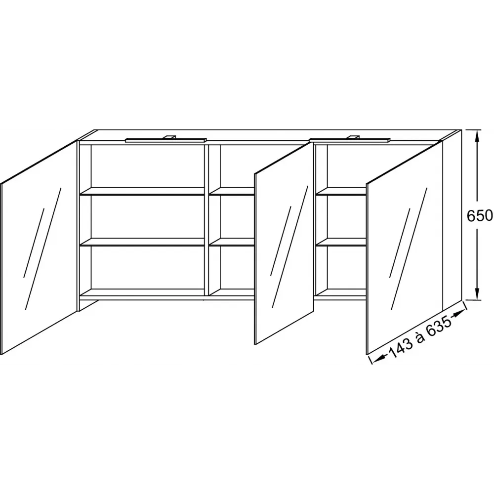 3 дверцы с двухсторонним зеркалом, 2 стеклянные полки на отделение