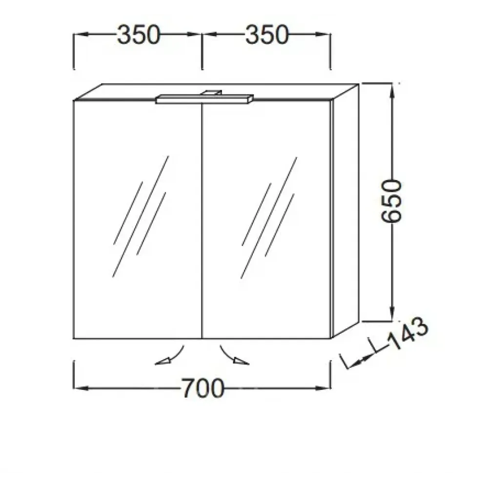 Оптимизированное хранение: 2 зеркальные двойные дверцы, 2 стеклянные полки на отделение.