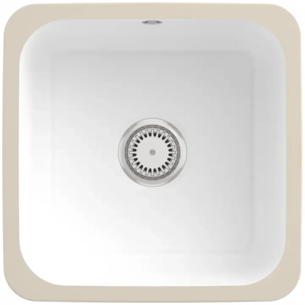Villeroy & Boch Cisterna 50 Мойка под столешницу, включая Комплект слива с ручным управлением, Крепежный комплект, выкл Керамика, 445 x 445 mm, Альпийский белый CeramicPlus 670301R1