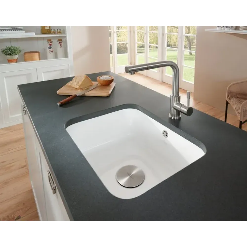 Villeroy & Boch Cisterna 60C Мойка под столешницу, включая Комплект слива с ручным управлением, Крепежный комплект, выкл Керамика, 550 x 440 mm, Альпийский белый CeramicPlus